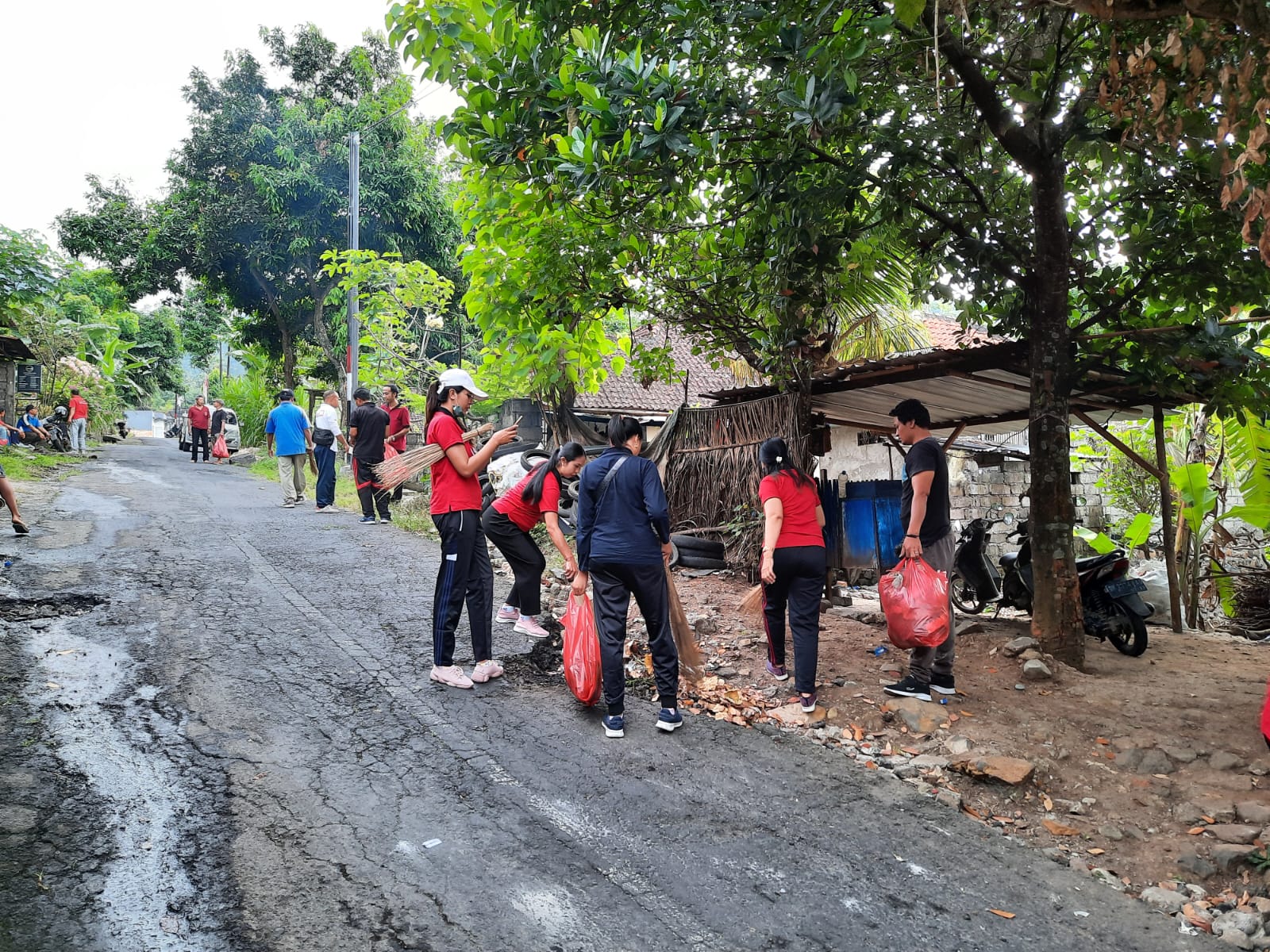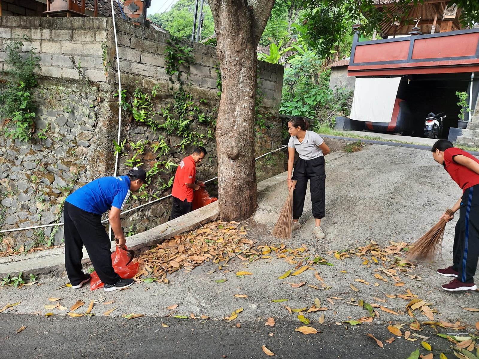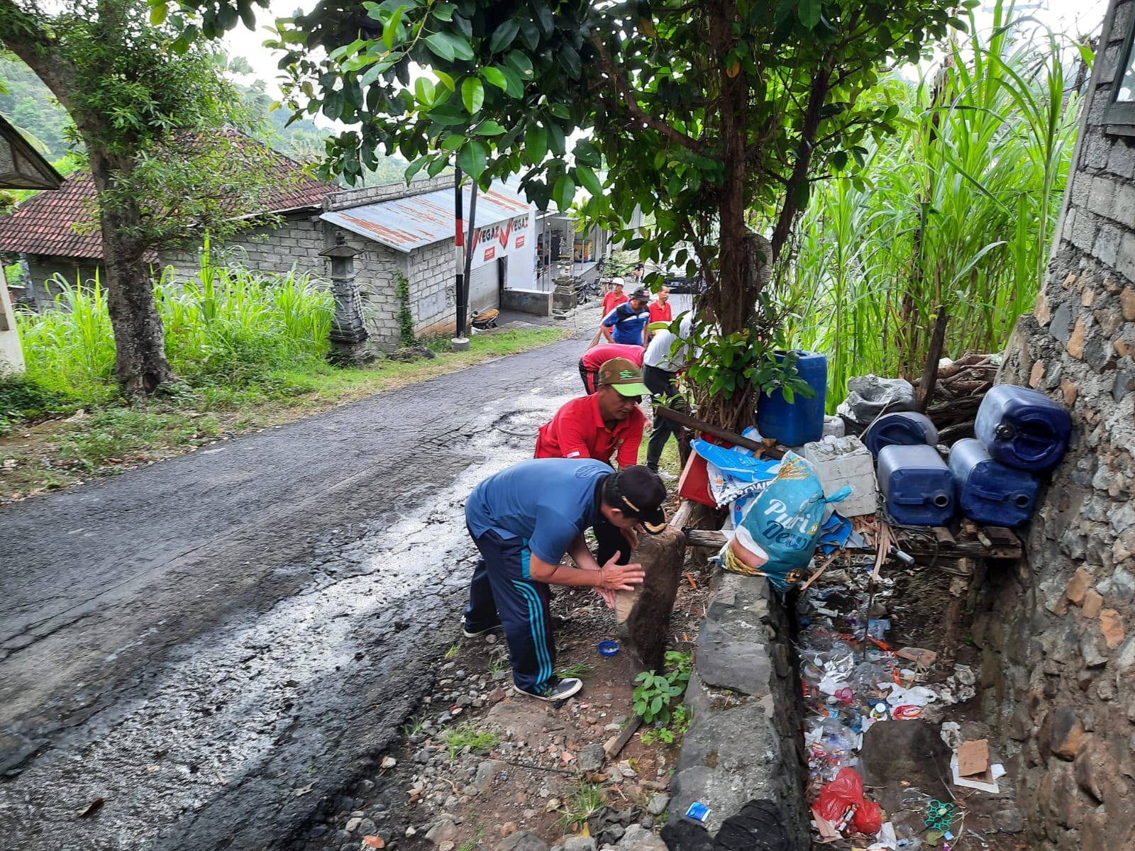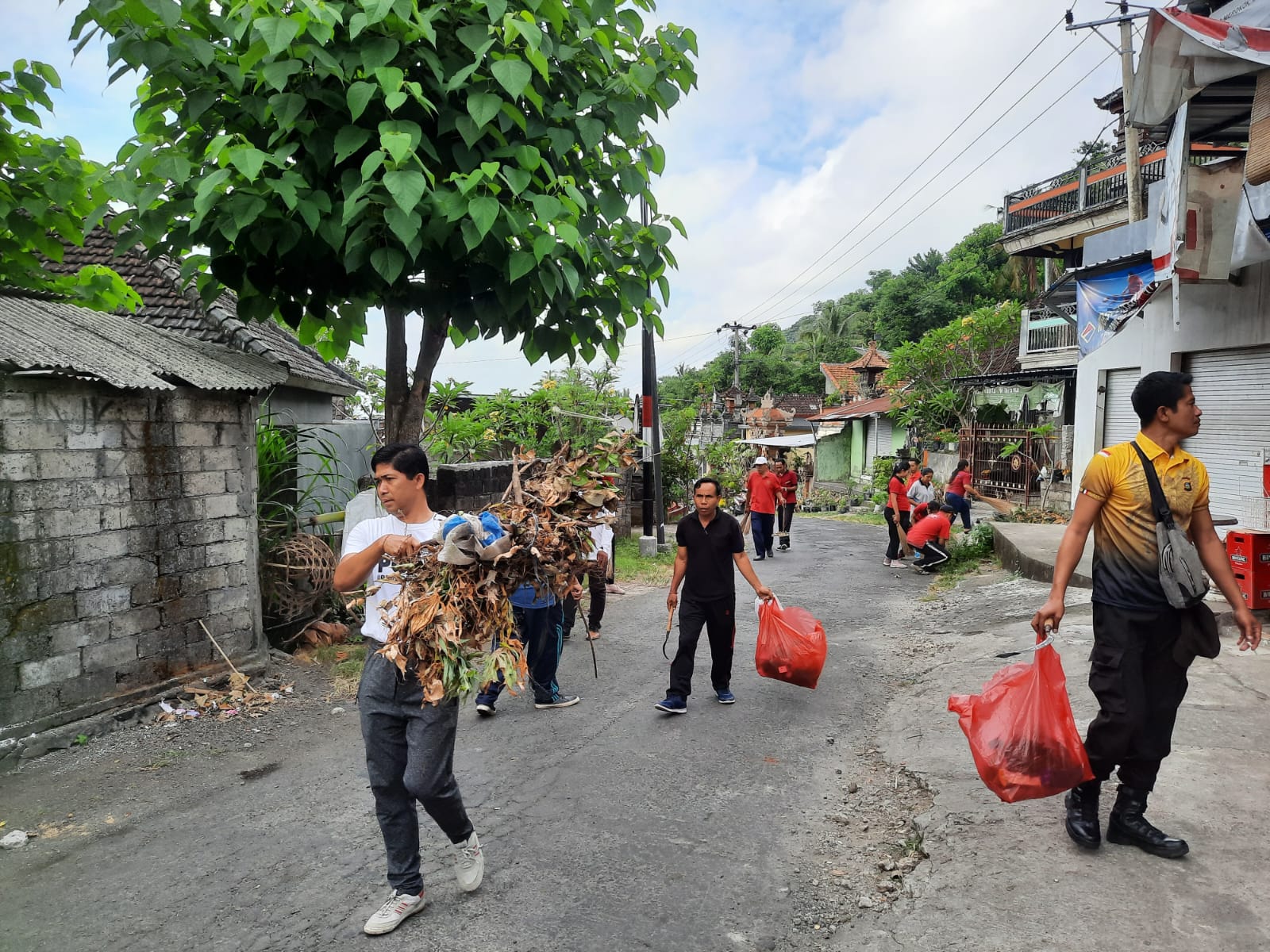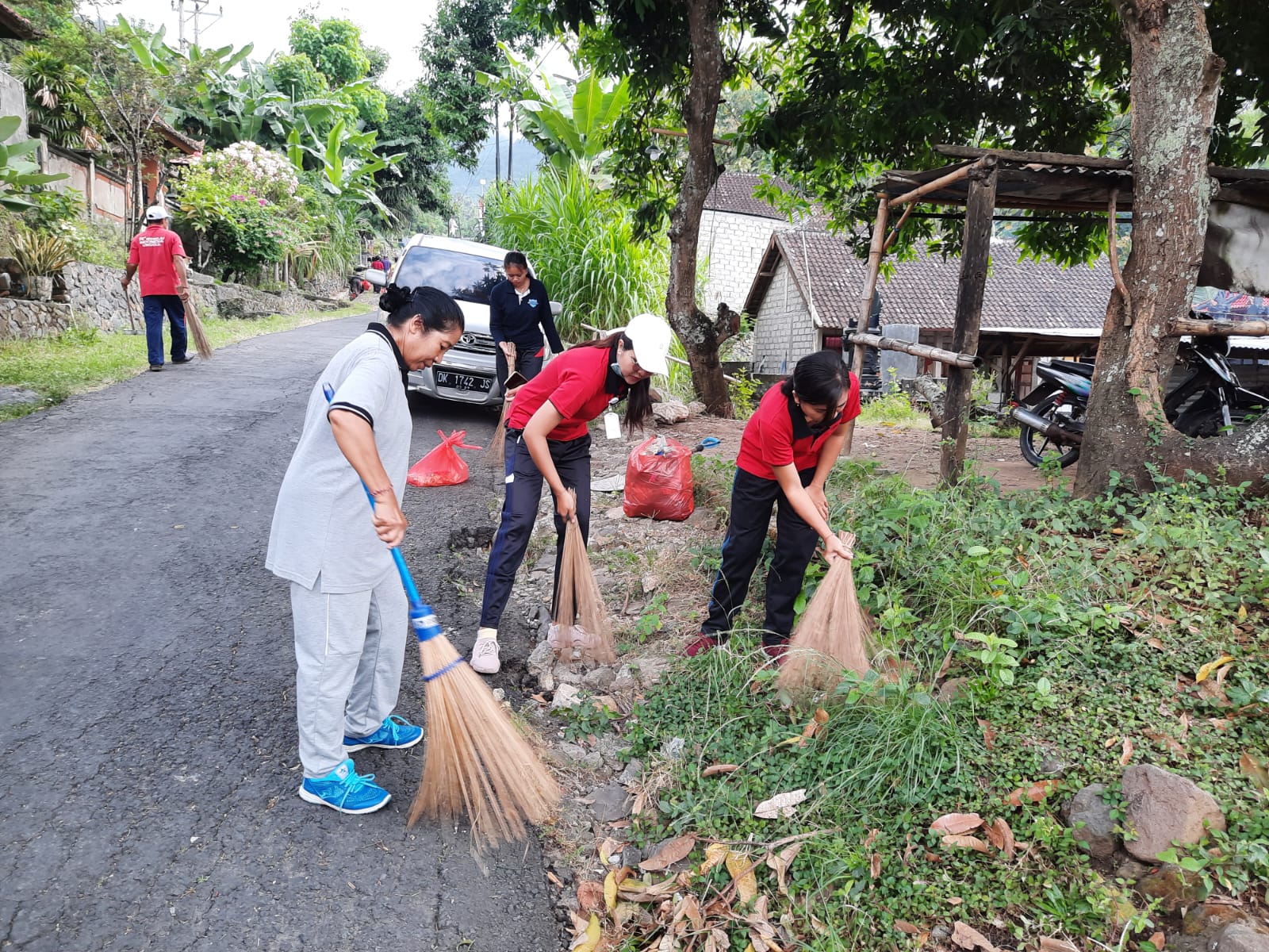 Pembersihan dimulai dari arah selatan Kantor Desa yaitu dari pertigaan tubuh menyusur ke utara sampai di pertigaan TK Putra Putri Bangsa Br Dinas Tukad Buah.