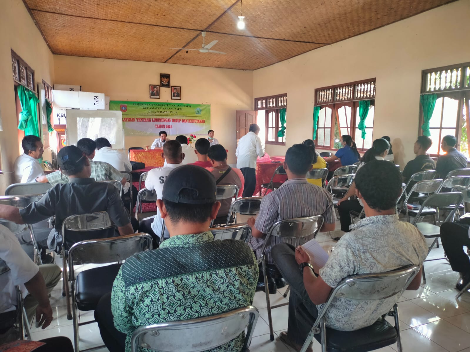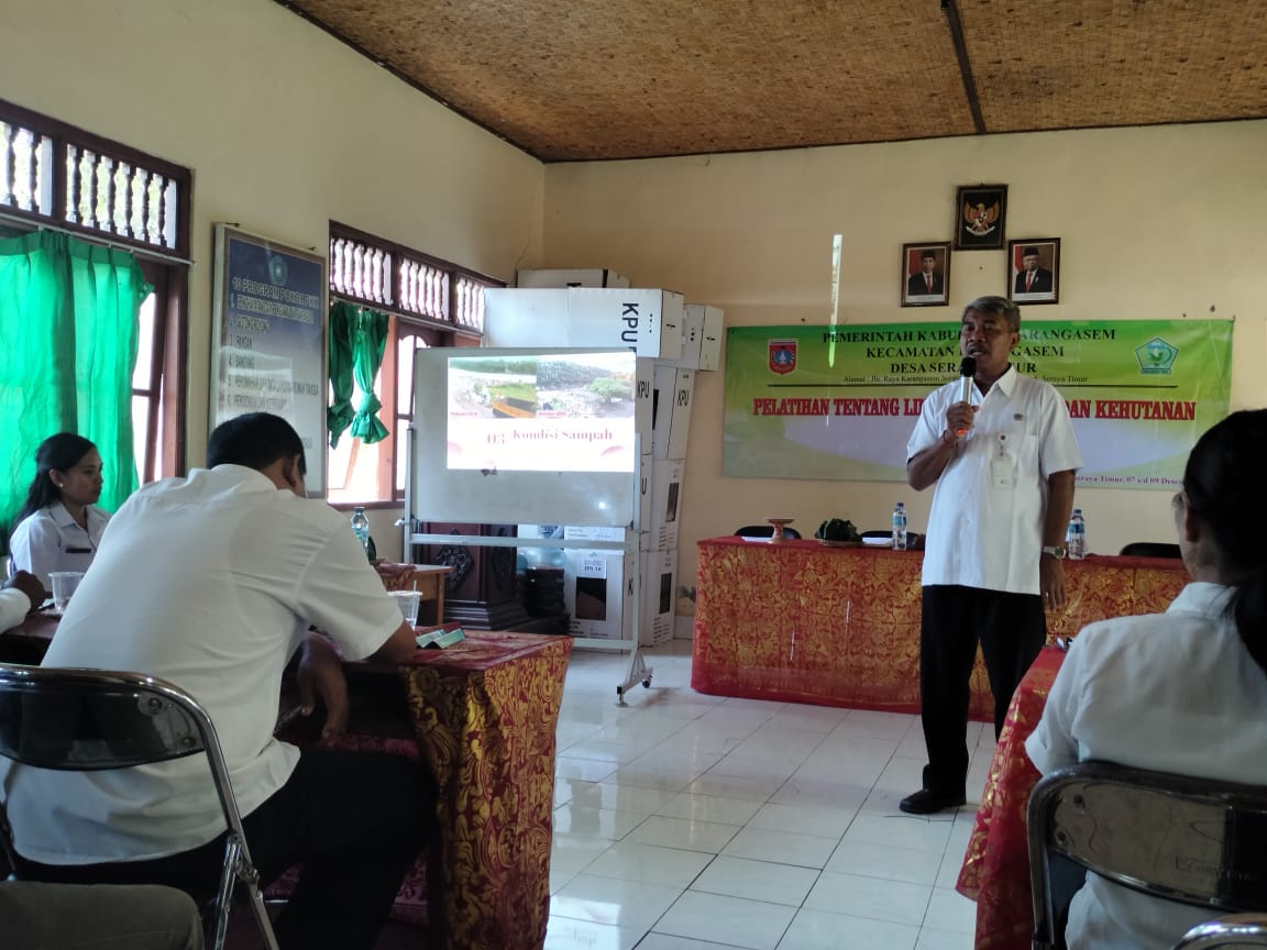 Dengan narasumber dari Kesling Puskesmas Karangasem II dan Dinas Lingkungan Hidup Kabupaten Karangasem. Peserta Pelatihan Tentang Lingkungan Hidup dan Kehutanan sebanyak 40 Orang, terdiri dari unsur Perangkat Desa, Tokoh Masyarakat, Kepala Wilayah, PKK dan Karang Taruna.